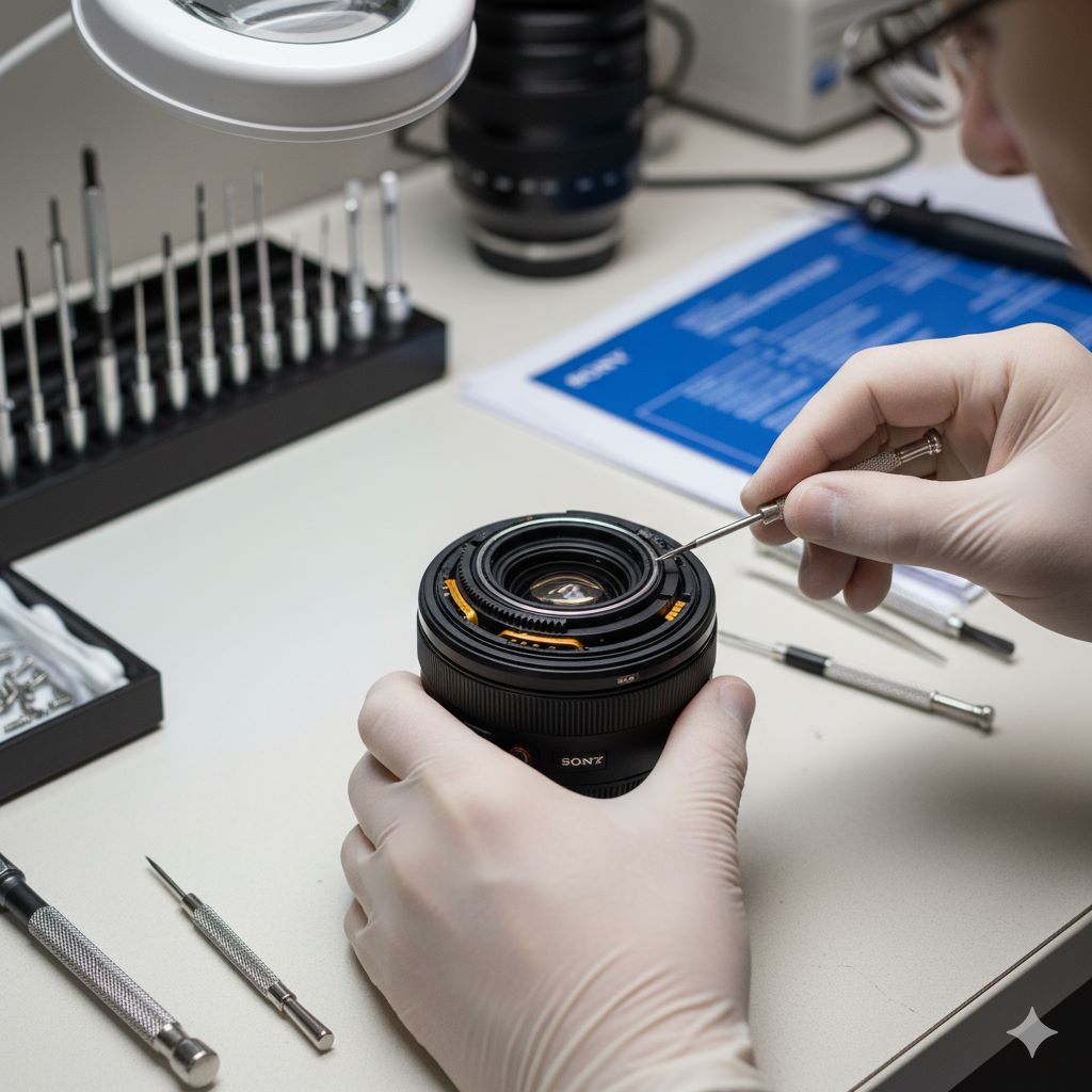 تعمیر حلقه فوکوس سونی در مراکز تخصصی مانند شرکت اطمینان با رعایت استانداردهای کارخانه انجام می‌شود و شامل بازدید مکانیکی، تعمیر یا تعویض قطعات آسیب‌دیده، روان‌کاری و کالیبراسیون با موتور خطی است.